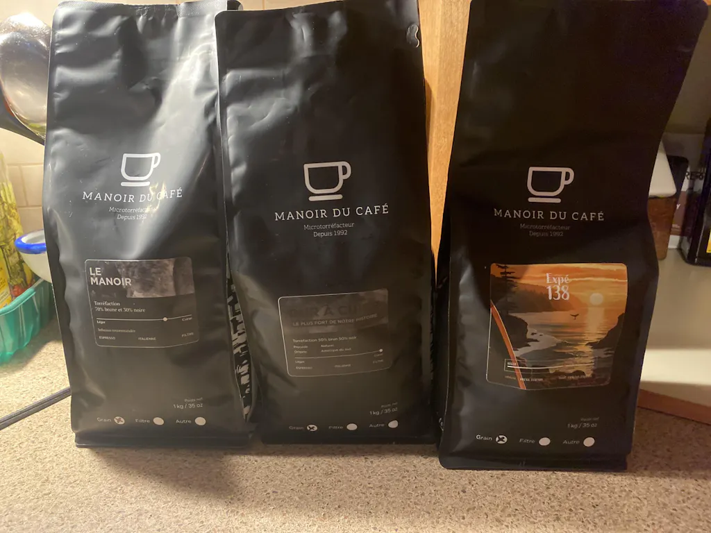 J’en ai acheté 3 pour essayer comme nouveau client le Dure à cuire, le Manoir et le 138 c’est ce dernier que je préfère je le trouve plus savoureux plus goûteux plus d’arômes. Bien que je suis amateur de café des plus corsés et amer je l’ai quand préféré au Dur à cuire. J’ai été bien servi et la livraison est rapide 48hres j’avais mes cafés je n’ai pas eu à me sevrer 😃